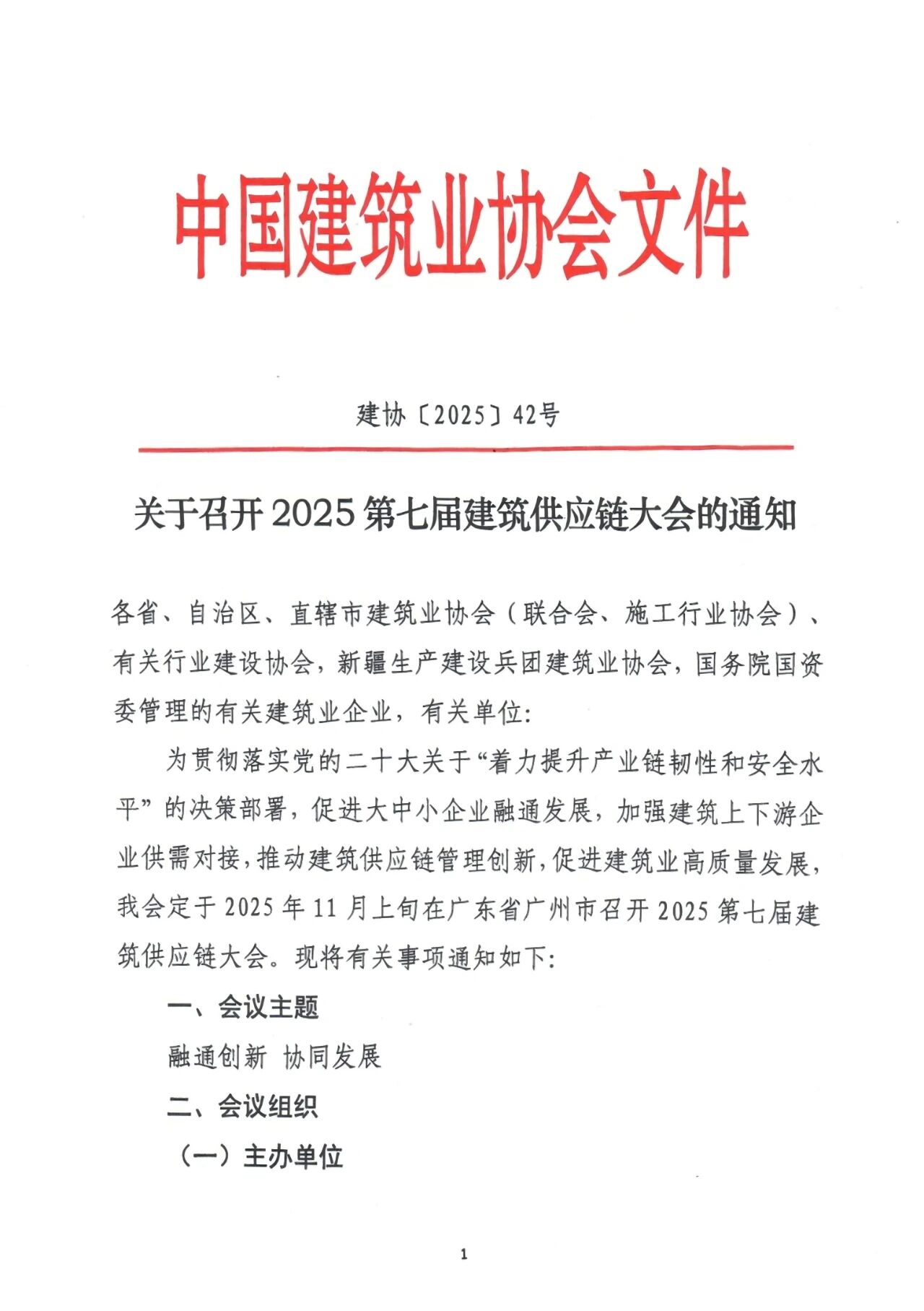 >转发中建协关于召开2025第七届建筑供应链大会的通知