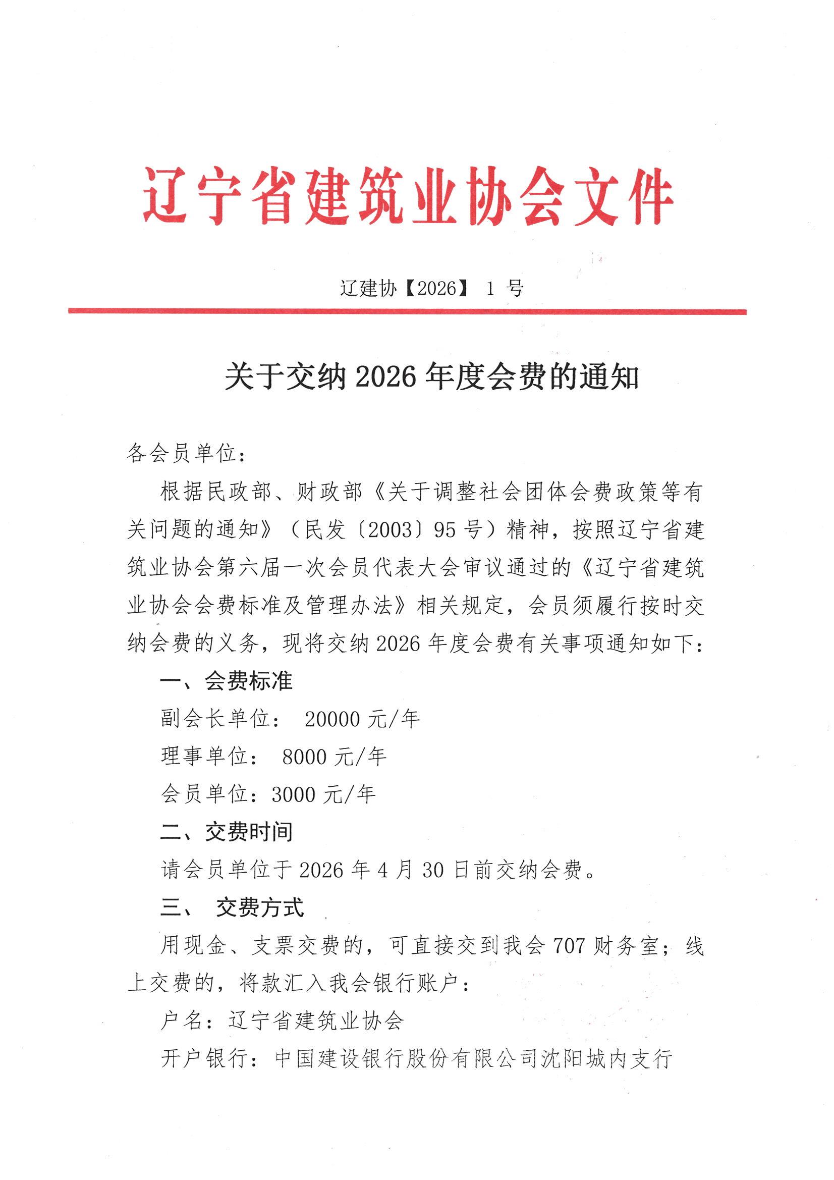>关于交纳二零二六年度会费的通知