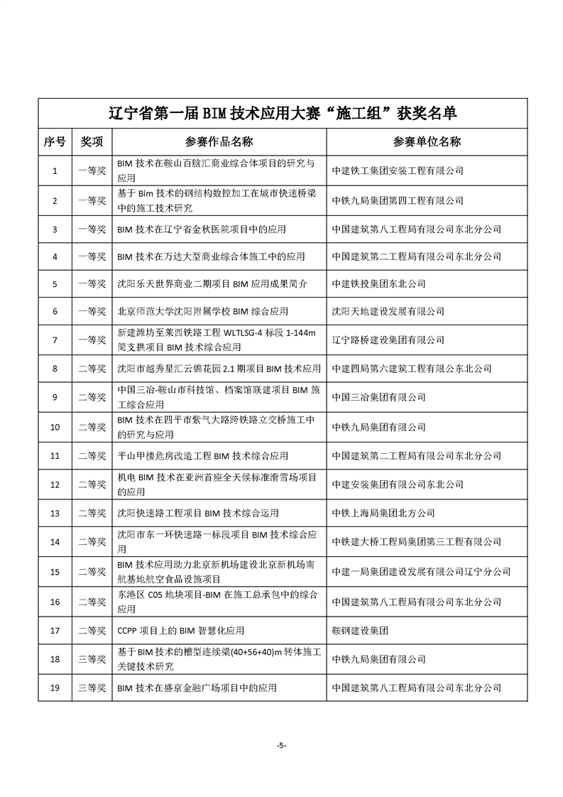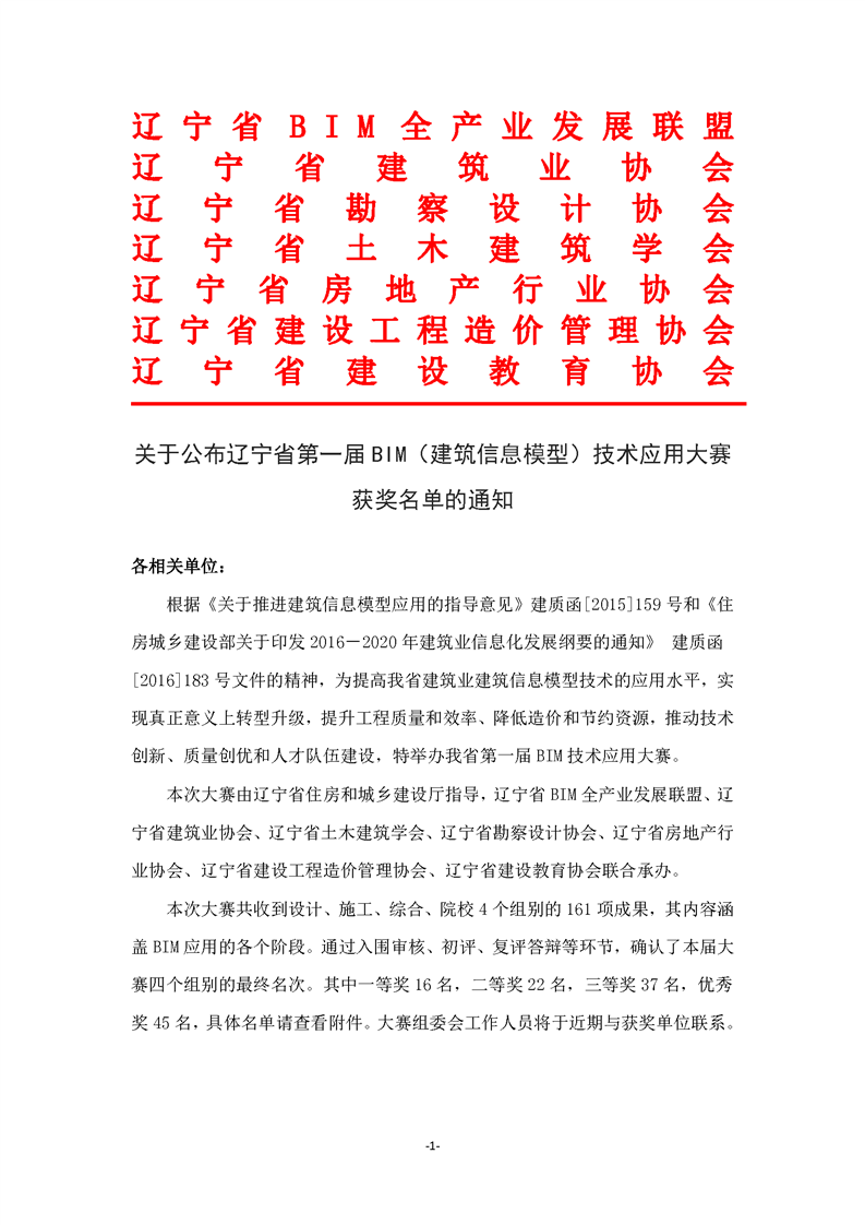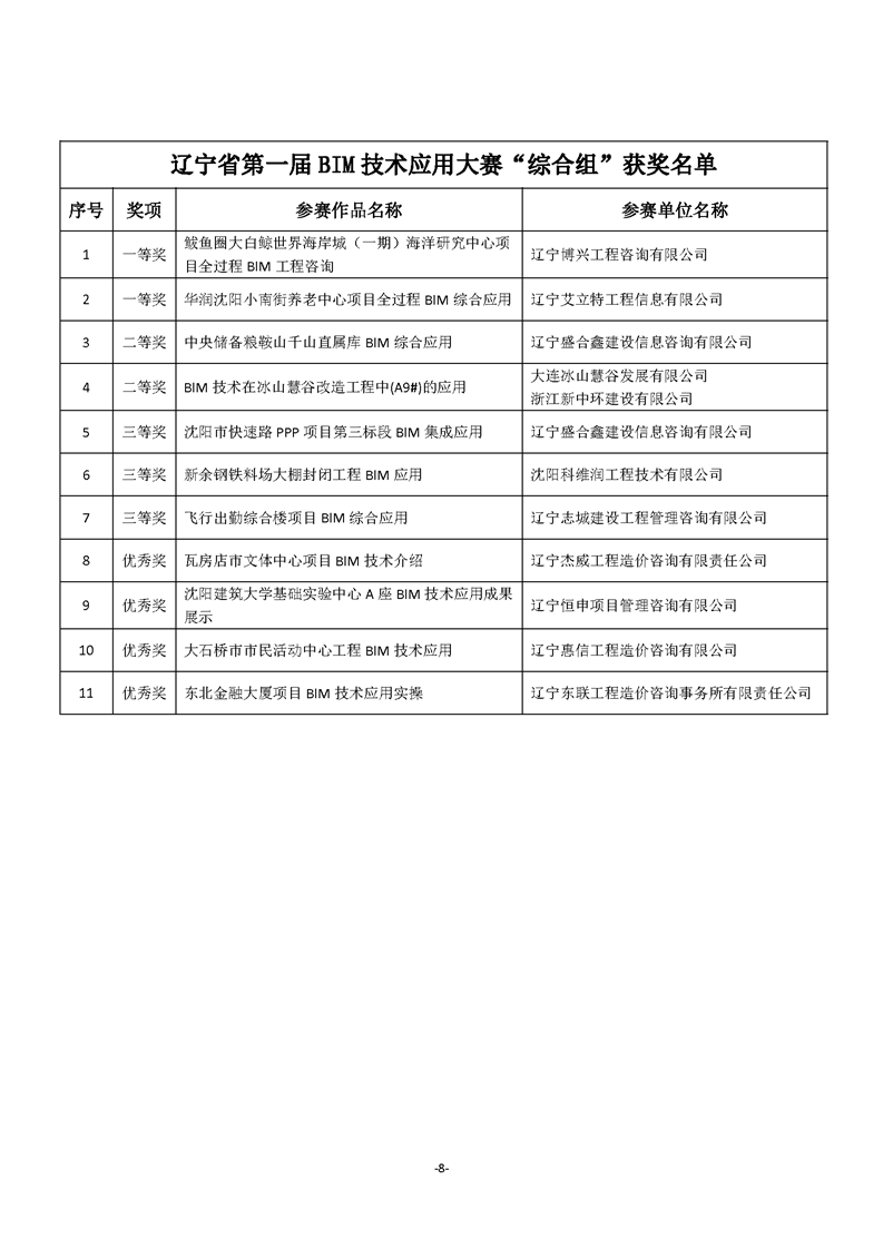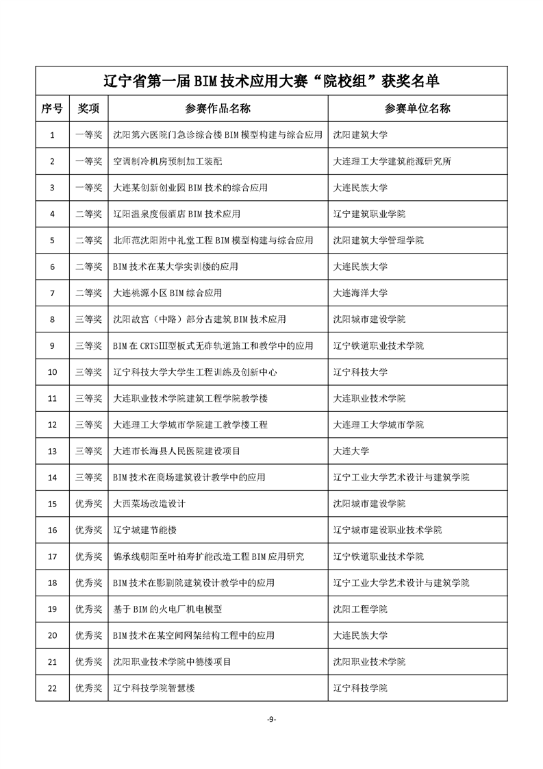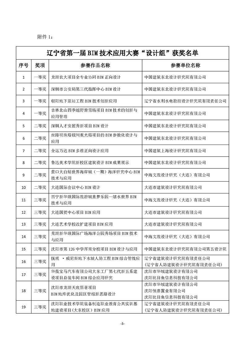 >辽宁省第一届BIM技术应用大赛“获奖名单