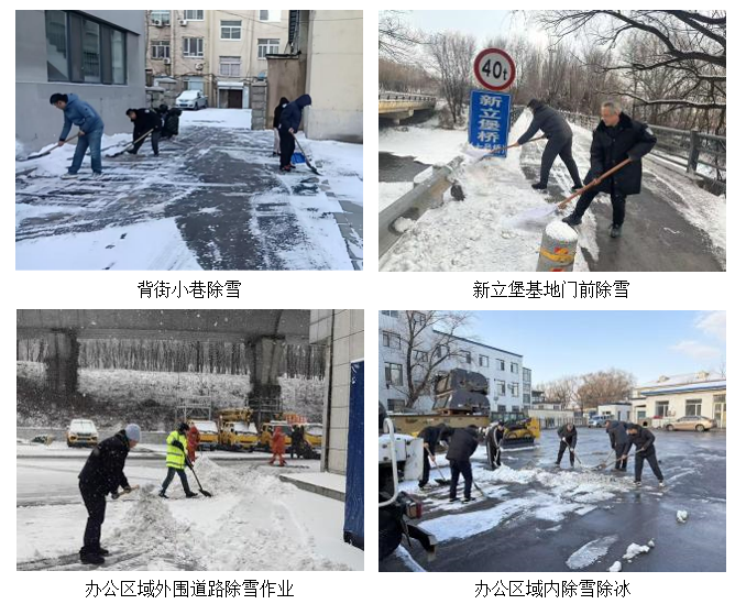 针对此次降雪量大、持续时间长,路面积雪厚重。修建公司组织下属11 家企业的志愿者服务队到居民小区、背街小巷、房